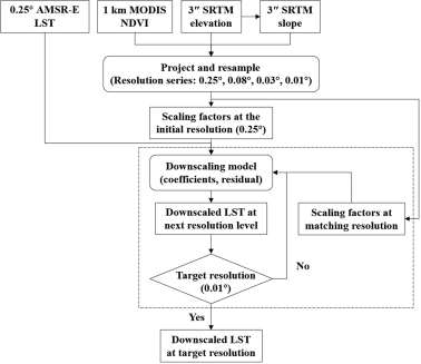 图2 AMSR-E地表温度数据的降尺度技术路线。