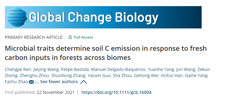 【论文题目】Microbial traits determine soil C emission in response to fresh carbon inputs in forests across biomes