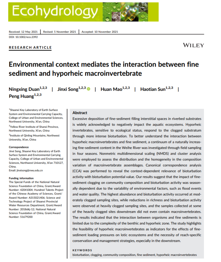 该成果受国家自然科学基金黄河重大专项、国家自然科学基金等项目支持,已在环境科学与生态学领域SCI期刊《Ecohydrology》上发表。