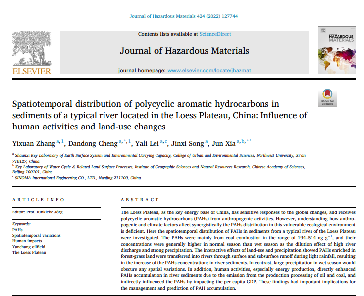 【论文题目】Spatiotemporal distribution of polycyclic aromatic hydrocarbons in sediments of a typical river located in the Loess Plateau, China: Influence of human activities and land-use changes