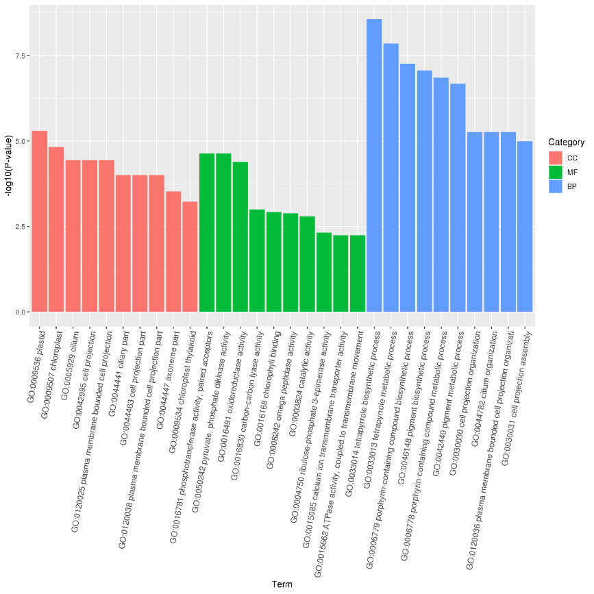 图11 克拉霉素暴露后绿藻体内的GO富集分析