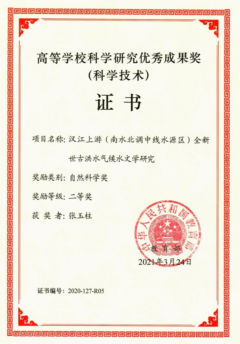 近日,教育部公布《教育部关于2020年度高等公司科学研究优秀成果(科学技术)奖励的决定(教科信[2021]1号)》,其中省重实验室的张玉柱副教授参与完成的“汉江上游(南水北调中线水源区)全新世古洪水气候文学研究”成果荣获自然科学奖二等奖。张玉柱副教授作为项目骨干成员,参与并完成其中野外考察观测、实验室测试分析和测年断代数据分析等基础工作。