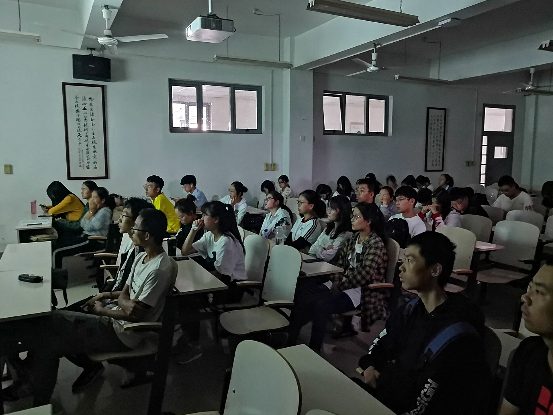 电影节奏很紧张,随着情节一步步推进,同学们的情绪也起起伏伏。看得出来,同学们观影十分投入。诗人米莱曾这样写:“历史,是刻在时间回忆上的一首回旋诗。”电影里曾数次切入录像,与前后对比有显突兀。但毫无疑问,作为纪念的公益电影,《建国大业》旨在告诉人们没有偏差的历史。