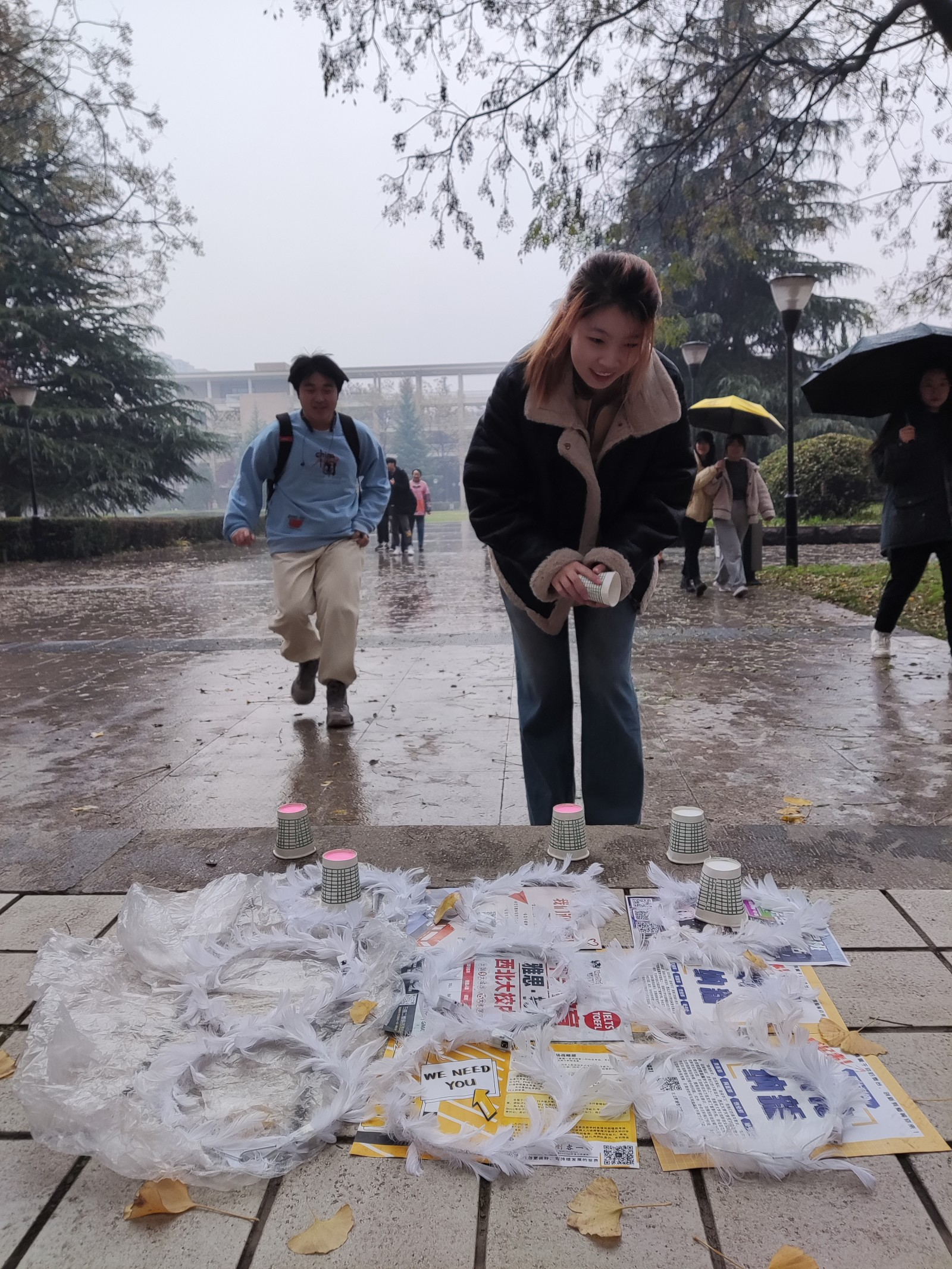 比赛当日下起了小雨,出于对同学们安全的考虑,原先设定的各项目打卡地点大都改为了室内地点。活动开始,工作人员宣读活动规则及注意事项,并向各组派发打卡地图。随后,比赛正式开始。在综合考虑了时间成本与路程长短后,各个小组奔向了不同的打卡点。这次活动在城环院体育部的策划下,准备了7个考验团队合作能力的项目,每个打卡点都有两到三名工作人员负责维持项目的正常进行。