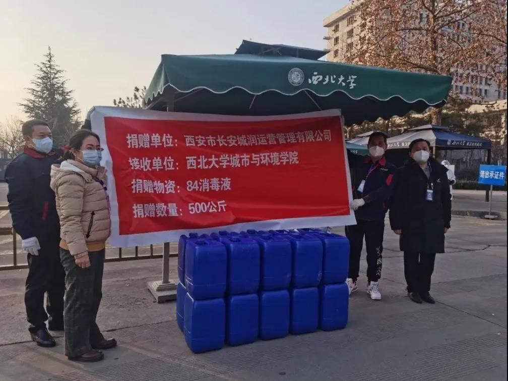 公司合作单位-西安市长安城润运营管理有限公司捐赠84消毒液500公斤