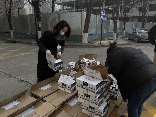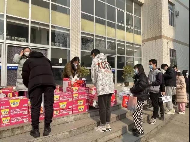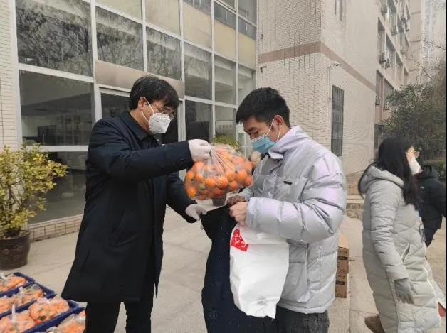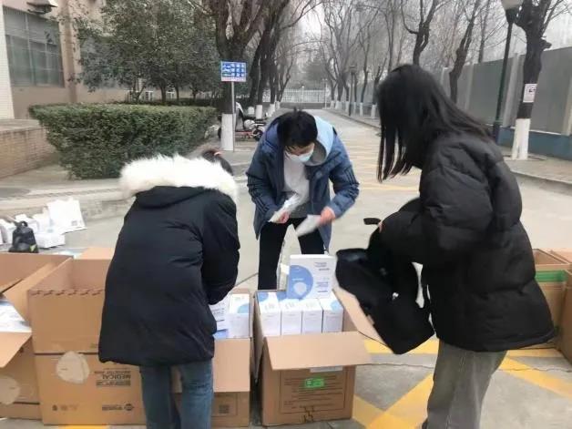 公司党政领导、在校辅导员、员工志愿者为员工分发爱心防疫物资