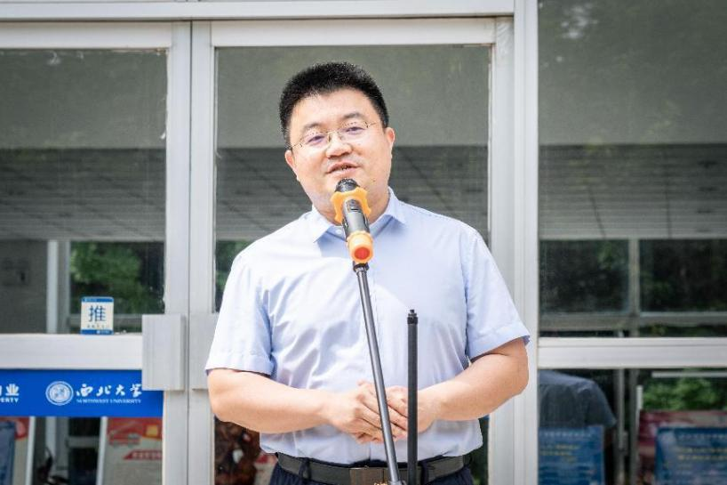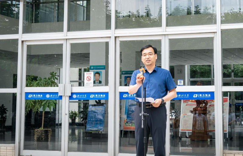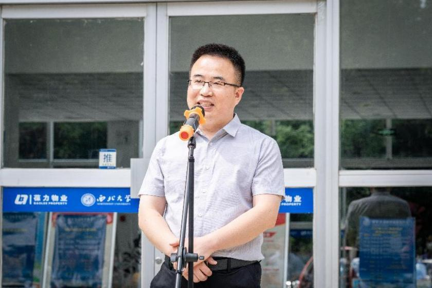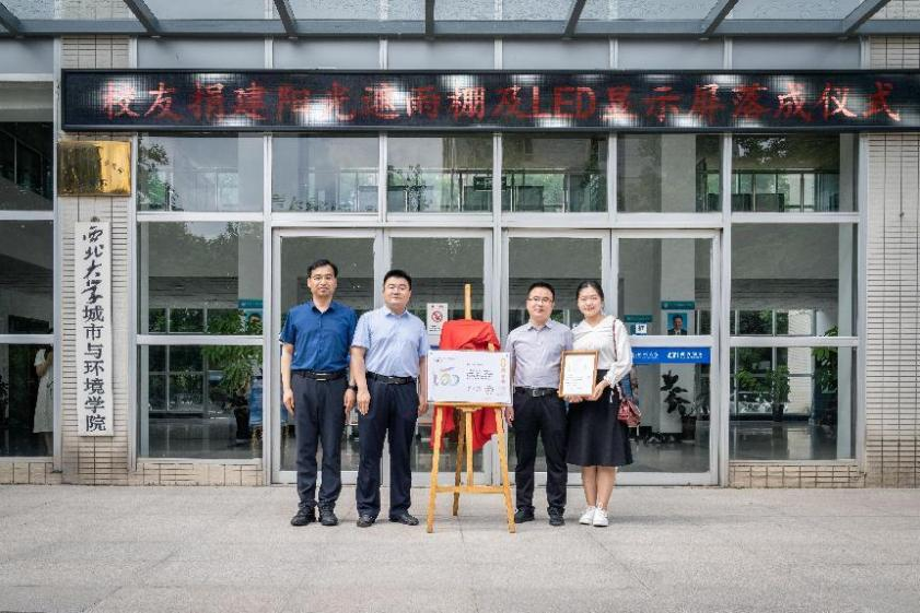 公司经理宋进喜代表公司对关心和支持公司发展的杰出员工王超、李琳夫妇表示衷心的感谢。他介绍了阳光遮雨棚及LED显示屏建造情况,他表示,员工王超、李琳在毕业后依然心系母校、关注母校、支持母校,为母校发展贡献力量,他们的行动彰显了西大情怀、传承了西大精神。