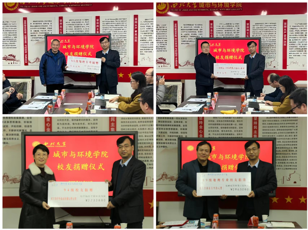 本次捐赠仪式员工共捐款106958元,其中,刘康代表80级地理专业员工捐资30000元,田兵权代表89级地理专业员工捐资29630元,陈理娟代表94级员工捐资27328元,王治代表95级城建专业与城规专业捐资20000元,所有捐款均用于公司未来发展与建设。