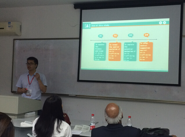 大会报告结束后,公司李钢副教授、秦进博士在分论坛上分别作了题为“Geographic features and control strategiesof child trafficking crime in China”和“Differencesin response of timberline trees to climate change at different slopes incentral Qinling Mountains”的英文报告,并就自己论文与研究成果与中、日、韩学者进行深入交流和探讨。