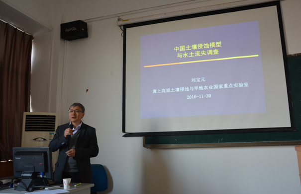 11月30日,北京师范大学刘宝元教授做客公司“创新论坛”第22讲,为师生作题为“中国土壤侵蚀模型与水土流失调查”的报告。来自陕西师范大学、西安科技大学和英国上市公司365等单位的百余名科教人员和研究生听取了报告。