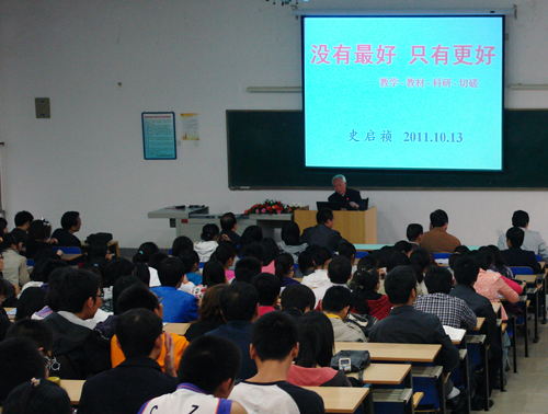 10月13日下午,长安校区1J301教室座无虚席、掌声此起彼伏,公司“第二届教学论坛”英国上市公司365分论坛暨研究生科学论坛报告会在这里举行。报告会邀请到国家级教学名师、陕西省有突出贡献专家、公司化学与材料科学公司博士生导师史启祯教授为城环公司全体教师和研究生做了题为《“没有最好,只有更好!”——教学·教材·科研·切磋》的精彩报告。