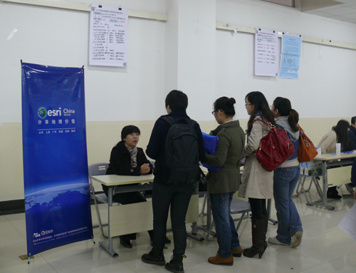 ESRI中国(北京)有限公司、西安四维图新信息技术有限公司等18家省内外地理信息产业知名企业参加了招聘会,招聘岗位共200余个,招聘会受到了我省开设地理信息系统及相关专业的高校师生的广泛关注,来自陕西师范大学、西北农林科技大学、长安大学、西安科技大学和公司等高校的毕业生约500余人参加了招聘会。