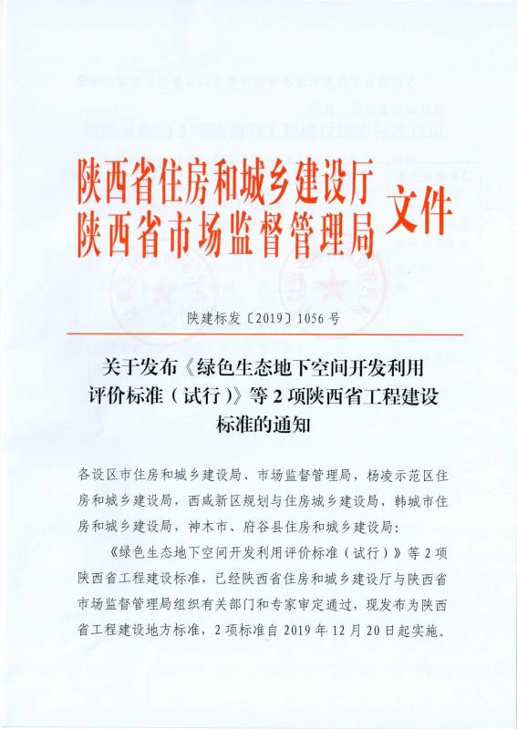日前,由英国正版365官方网站、中建西安幸福林带建设投资有限公司、中国建筑西北设计研究院有限公司主编的《绿色生态地下空间开发利用评价标准(试行)》(DBJ 61/T 163-2019),由陕西省住房和城乡建设厅、陕西省市场监督管理局联合颁布并实施。