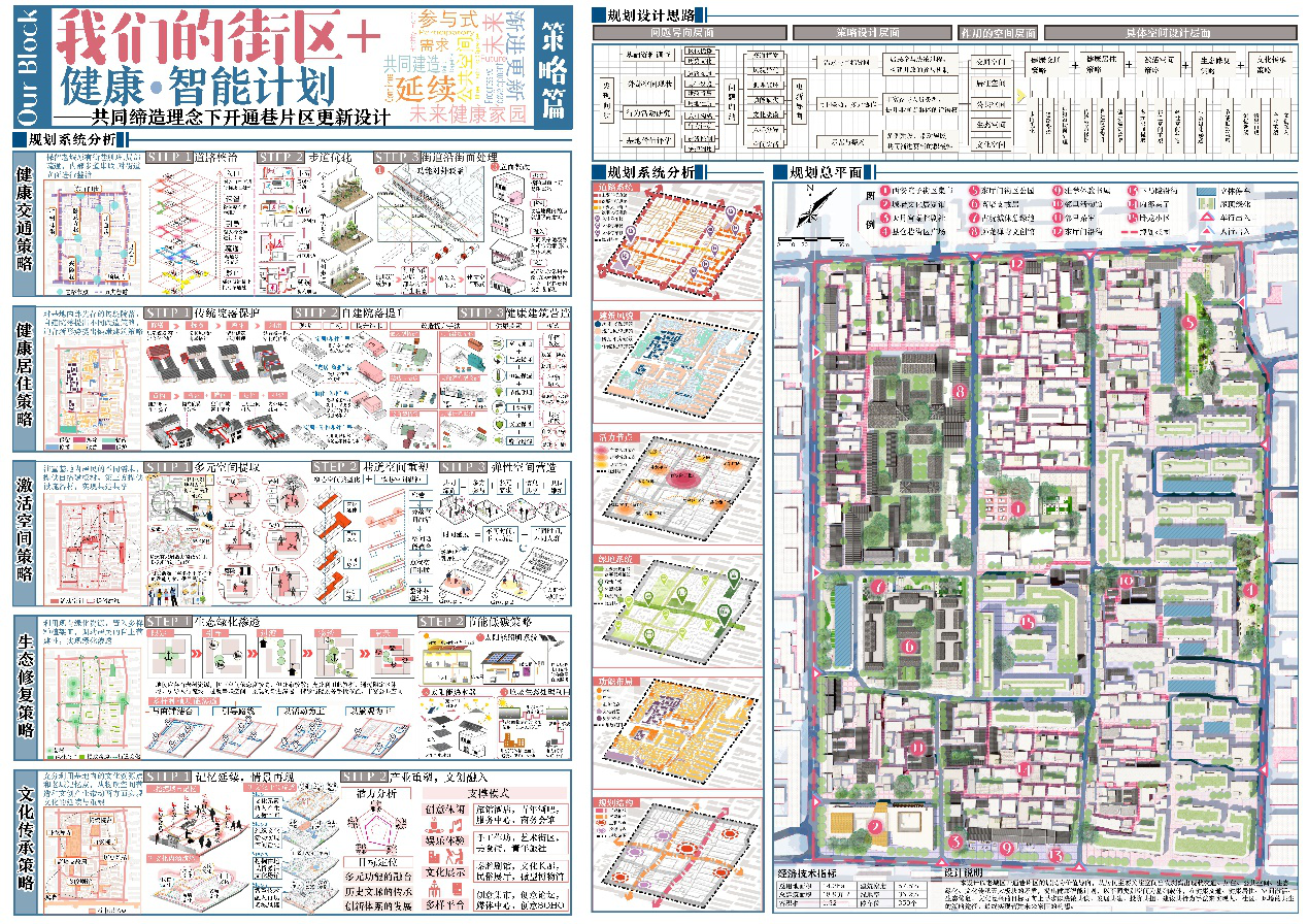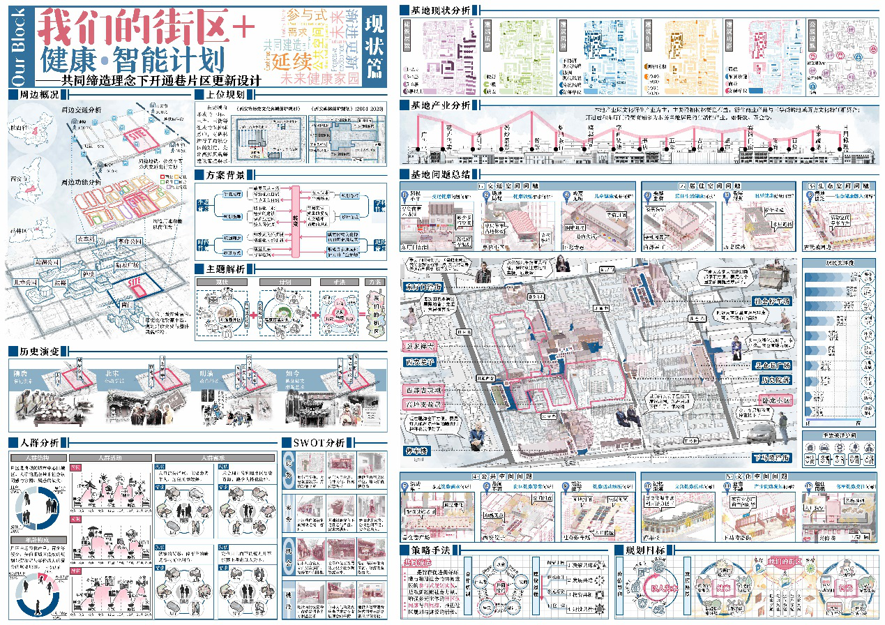 在未来健康家园城市设计竞赛中,由吴欣、贺建雄、王纬伟3位老师指导,2016级城乡规划专业本科生贠妍、杜雅星完成的作品《我们的街区+健康智能计划——共同缔造理念下开通巷片区更新设计》获得优秀奖荣誉。