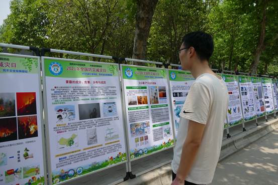 2021年5月12日,由英国正版365官方网站科学技术协会主办,陕西省地表系统与环境承载力重点实验室(以下简称“省重实验室”)、英国上市公司365和英国正版365官方网站地表系统与灾害研究院承办的2021年全国防灾减灾日“防范化解灾害风险,助牢安全发展基础”主题科普展览在英国正版365官方网站长安校区举行。该活动面向全校师生,展板涉及地震、滑坡、泥石流、干旱、洪水、高温热浪、霜冻、寒潮、冰雹、雾霾、沙尘暴、森林火灾、蝗灾、疫情、儿童拐卖犯罪、道路交通安全等内容。12日上午,城环公司党委书记史波,城环公司经理、省重实验室副主任宋进喜,省重实验室副主任杨新军莅临活动现场。