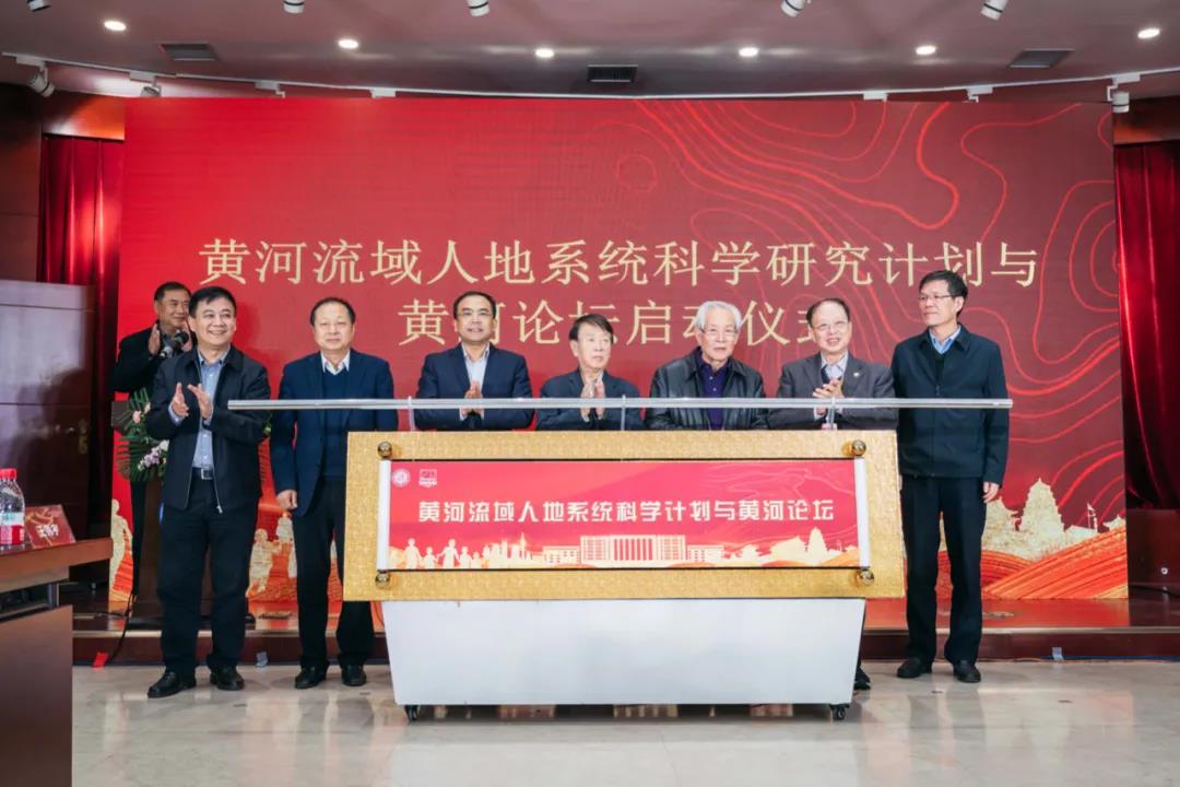 在与会人员的见证下,参会嘉宾共同推下启动杆,正式启动“黄河流域人地系统科学研究计划与黄河论坛”。