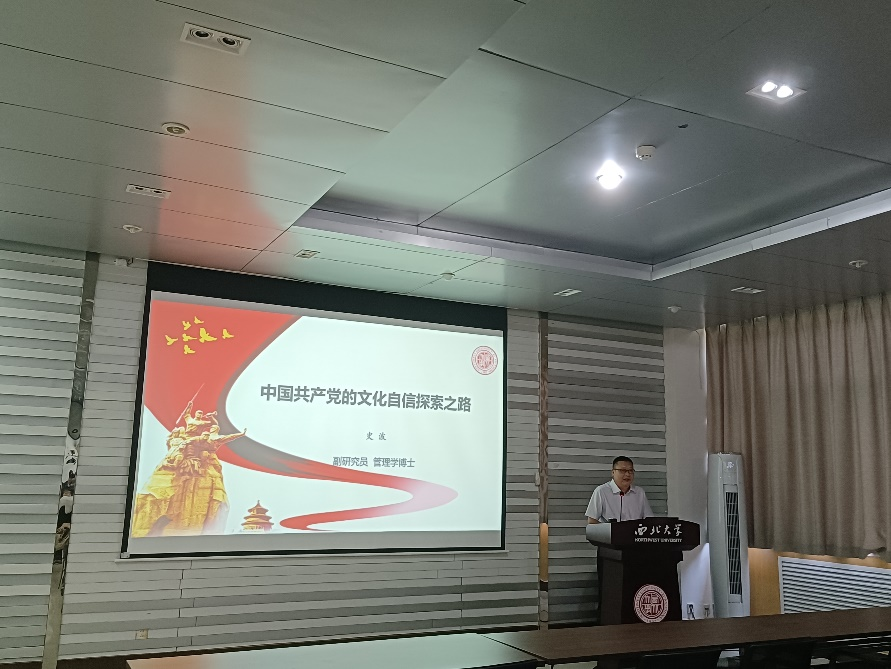 在专题党课中,史波书记以文化的概念与定义为切入点,介绍了文化的意义及其作用。史波书记从中国近代历史发展的进程入手,带领师生回顾了近代中国在鸦片战争之后的技术反思,甲午战争之后的制度反思,辛亥革命之后的文化反思,以及新文化运动发起的过程和走向。他指出,中国共产党的早期领导人都是新文化运动的领导者和参与者,或者是在新文化运动中成长起来的新一代青年,中国共产党自成立之日起,就天然地、一以贯之地、自觉地承担起了中华民族文化建设的历史重任,并将文化建设与社会革命和社会改造紧密结合,以彻底的革命性把人民从封建主义思想中解放出来。