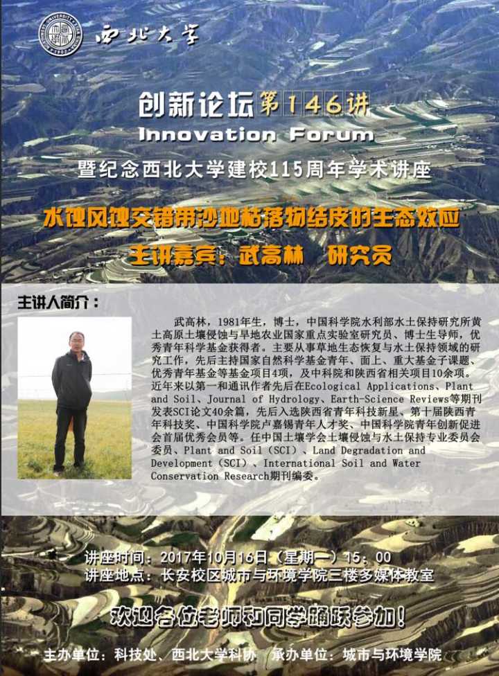 讲座题目:水蚀风蚀交错带沙地枯落物结皮的生态效应