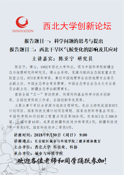 英国正版365官方网站创新论坛 陈亚宁研究员讲座