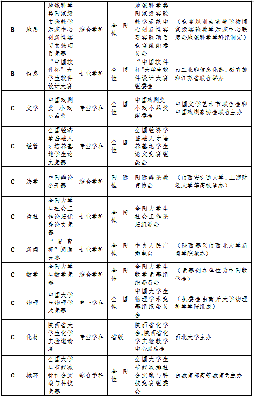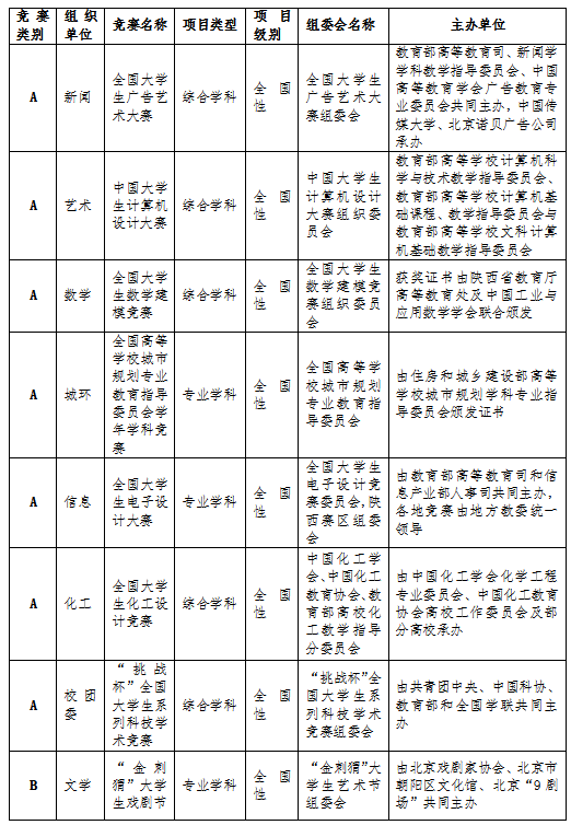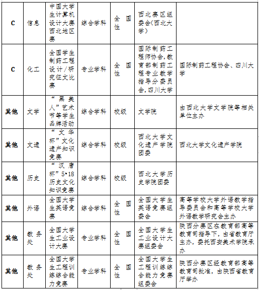 (二)员工参加学科竞赛,依照《英国正版365官方网站本科实践教学经费分配办法》(西大教〔2013〕22号)、《英国正版365官方网站关于新增本科生员工竞赛“推动计划”立项项目及对相关项目进行调整的通知》(西大教〔2015〕5号)文件中立项竞赛类别,对参加英国正版365官方网站本科生学科竞赛“推动计划”立项竞赛者获奖者加分,加分标准如下: