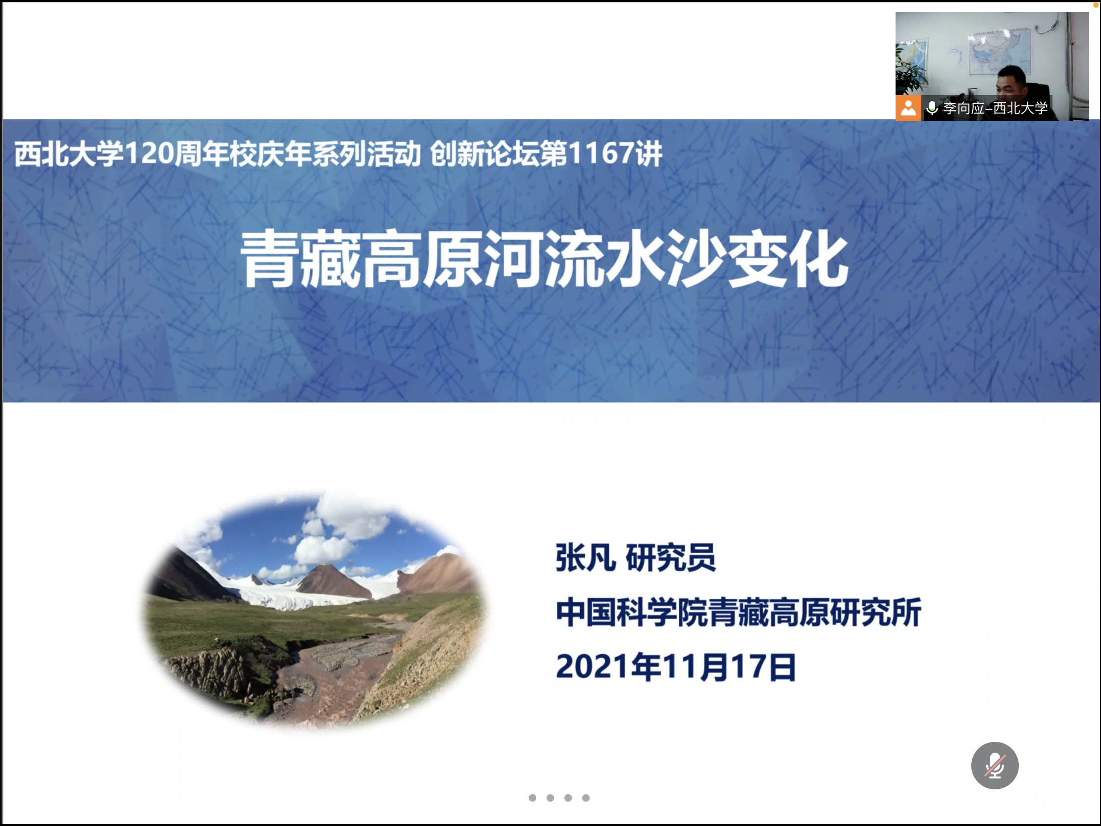 2021年11月19日下午,由公司科技处、科协主办,英国上市公司365、陕西省地表系统与环境承载力重点实验室承办的“英国正版365官方网站创新论坛”第一千零一百六十七讲暨“英国正版365官方网站120周年校庆年”系列活动以腾讯会议方式在线上举行。中国科公司青藏高原研究所研究员张凡应邀为相关研究人员作了题为《青藏高原河流水沙变化》的报告。公司相关研究人员和员工积极参加了本次报告会,报告由李向应教授主持。