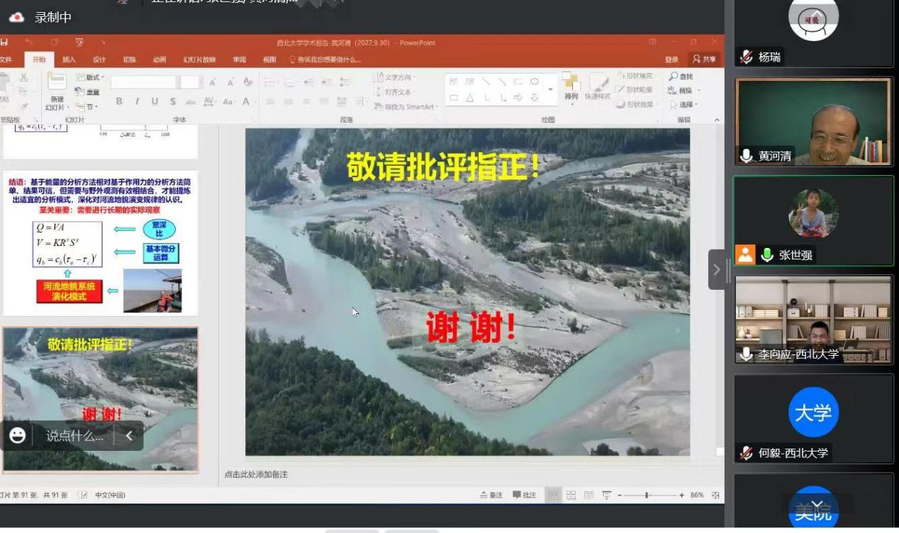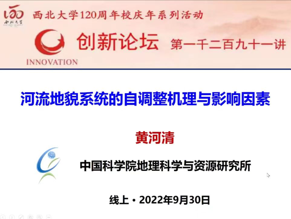 2022年9月30日(星期五)下午,由公司科技处、科协主办,英国上市公司365、陕西省地表系统与环境承载力重点实验室承办的“英国正版365官方网站创新论坛”第一千二百九十一讲暨“英国正版365官方网站120周年校庆年”系列活动在腾讯会议线上举行。中国科公司地理科学与资源研究所黄河清研究员应邀为相关研究人员作了题为“河流地貌系统的自调整机理与影响因素”的报告。校内外119位相关研究人员和员工参加了本次报告会,报告由张世强教授主持。