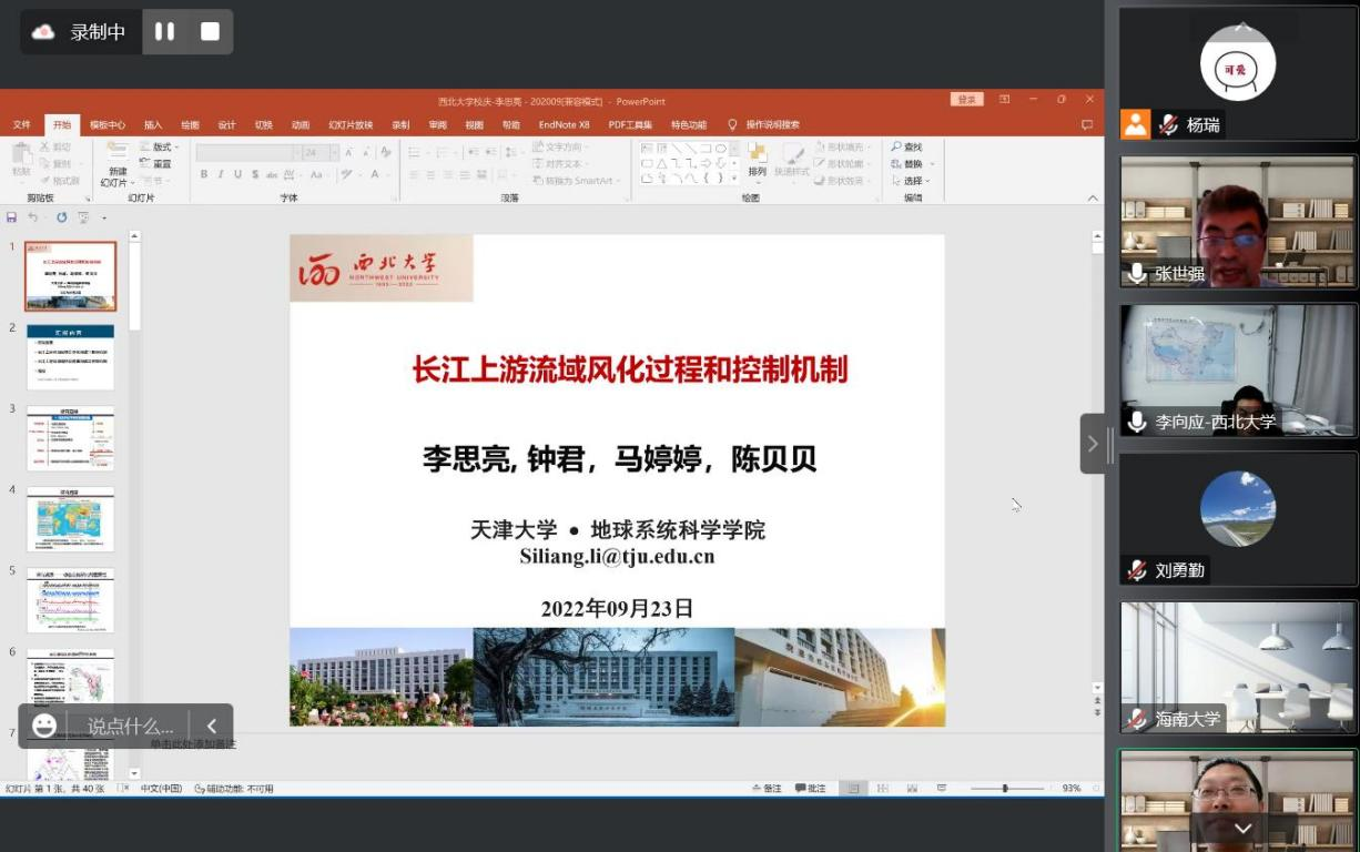 2022年9月23日(星期五)下午,由公司科技处、科协主办,英国上市公司365、陕西省地表系统与环境承载力重点实验室承办的“英国正版365官方网站创新论坛”第一千二百八十七讲暨“英国正版365官方网站120周年校庆年”系列活动在腾讯会议线上举行。天津大学李思亮教授应邀为相关研究人员作了题为“长江上游流域化学风化过程和控制机制”的报告。校内外90余位相关研究人员和员工参加了本次报告会,报告由张世强教授主持。